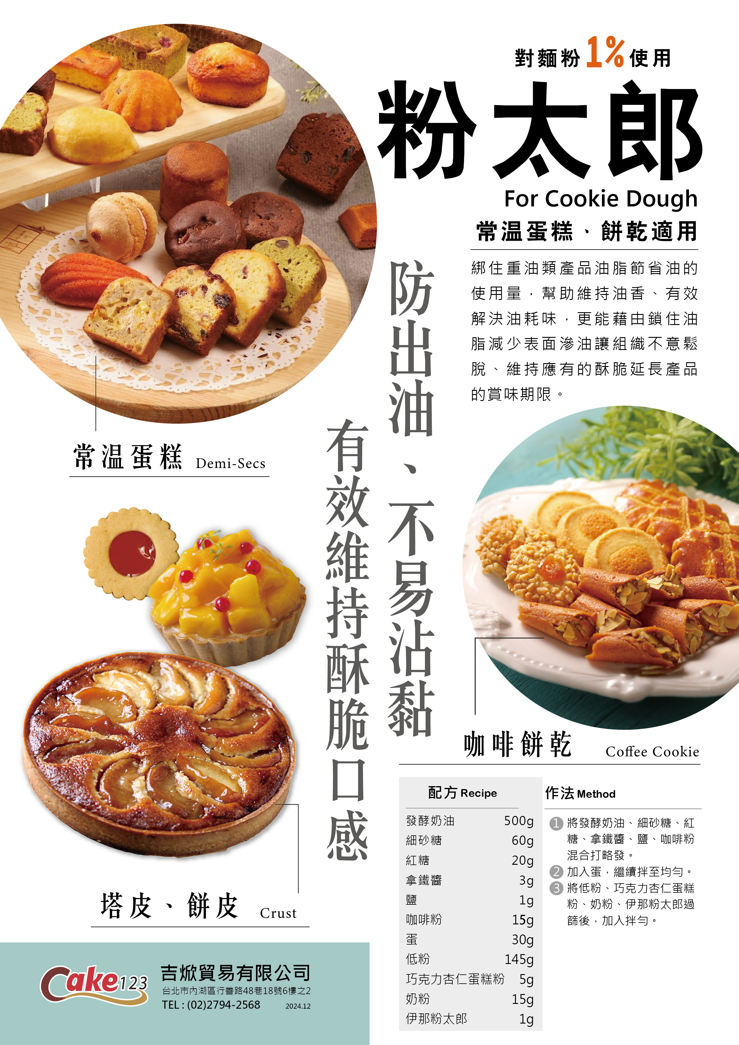 使西點、蛋糕類商品較易回軟,表面不易乾燥,減少出油及餅屑脫落,提升鬆脆口感!