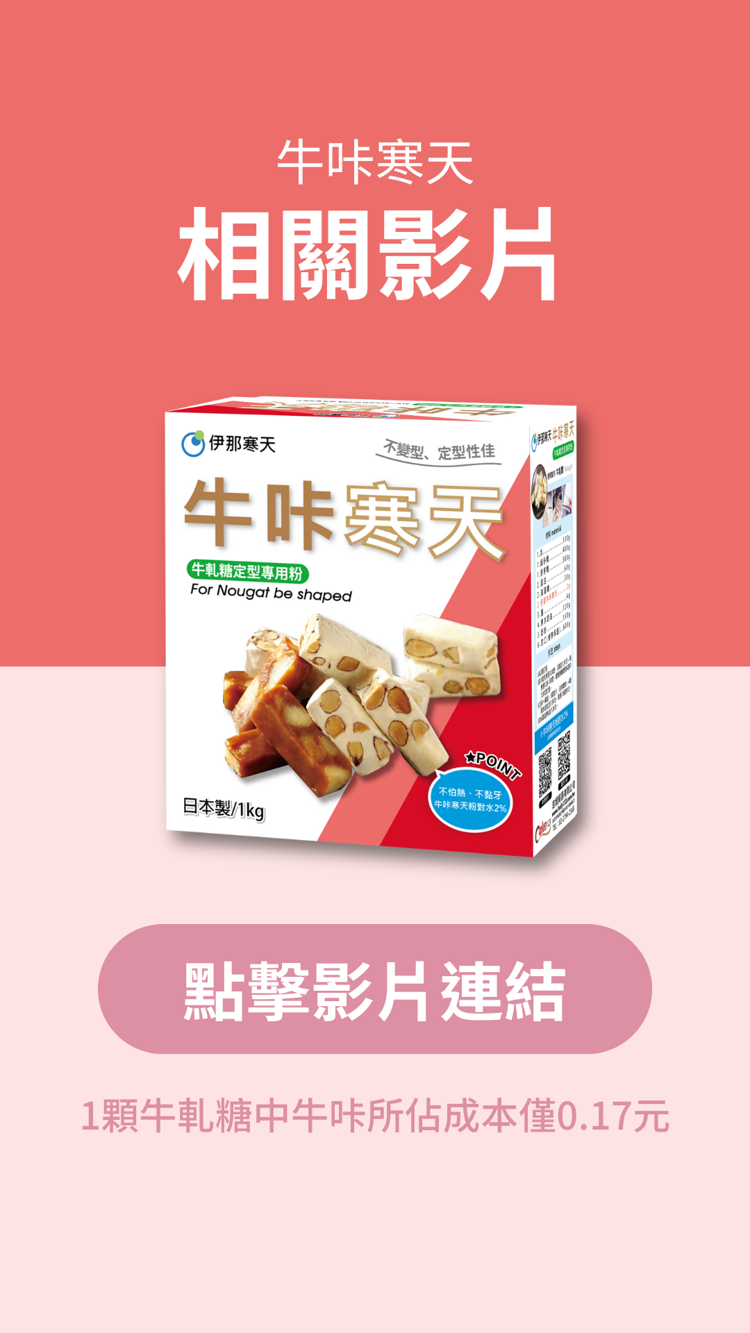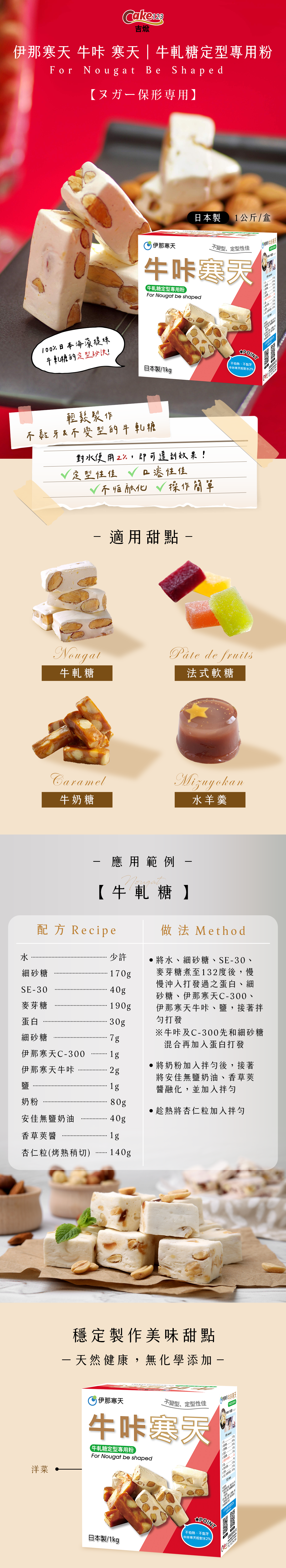 牛軋糖天氣熱就變形?伊那寒天【牛咔寒天-牛軋糖、軟糖專用粉】是一款幫助牛軋糖、軟糖保型和定型的寒天粉,